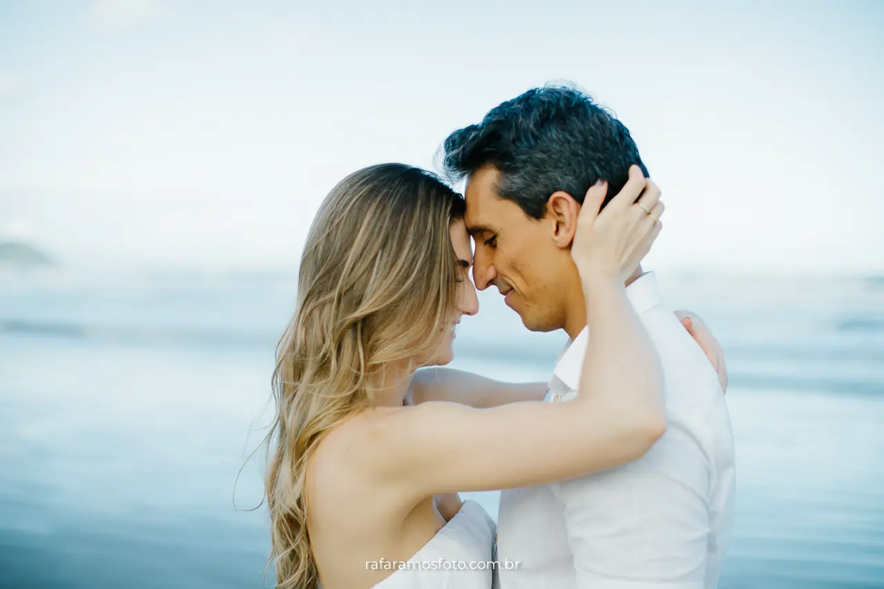 Durante o ensaio caminhamos pela areia, conversamos bastante e deixei o casal livre para interagir de forma espontânea. Essa abordagem cria fotografias mais verdadeiras e emocionais.